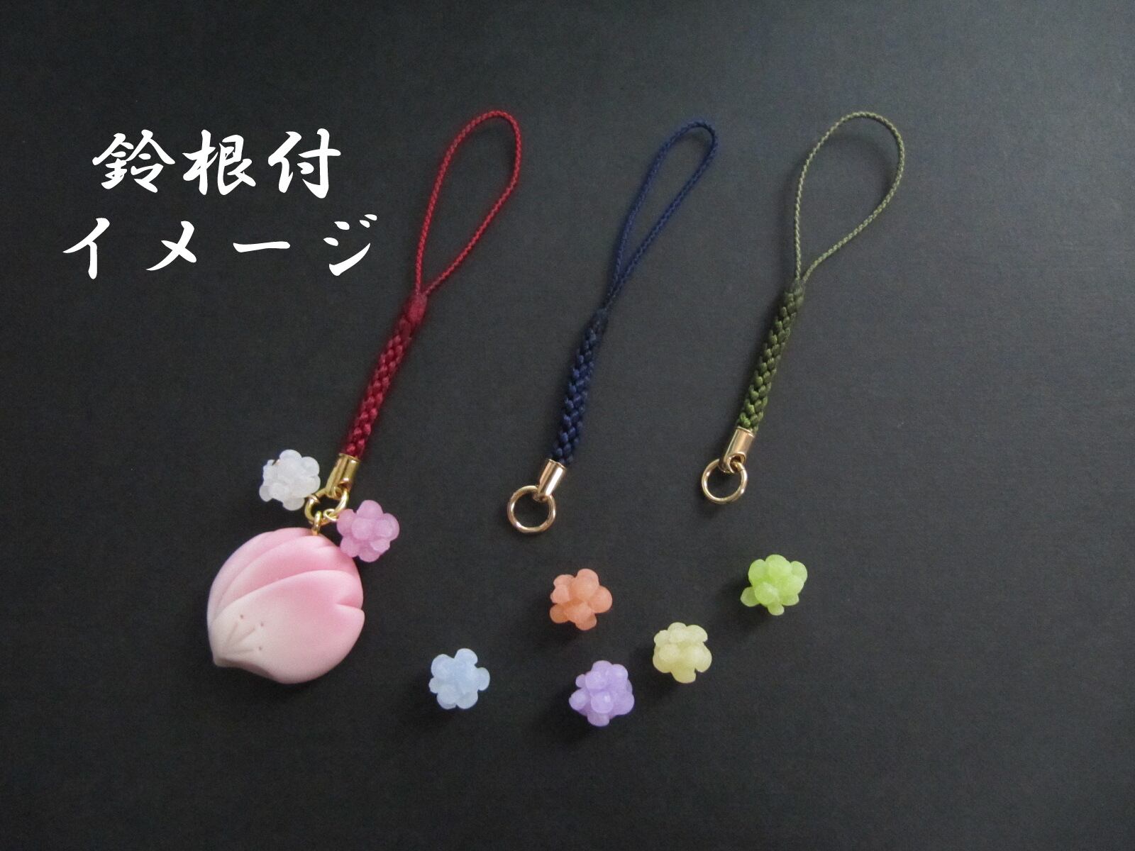 根付の色は画像の赤、藍、緑から選べます