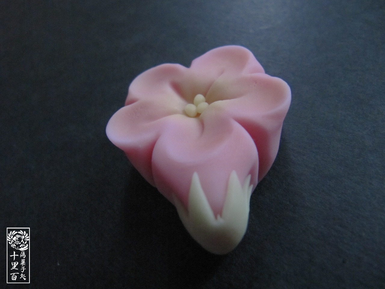 練り切り部分は樹脂粘土、飴部分はすけるくんとUVレジン、金平糖はすけるくんです。