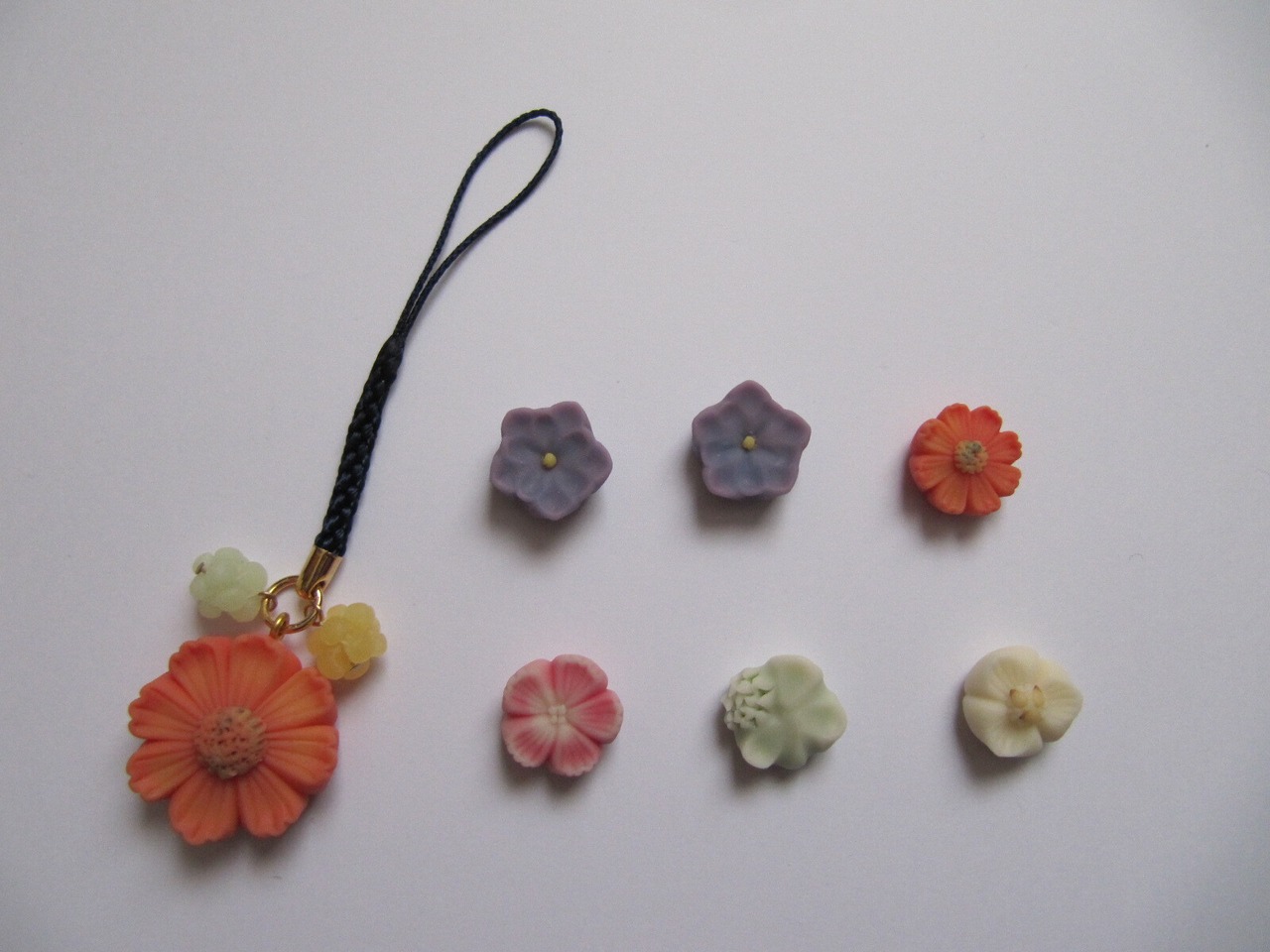 金平糖根付 紐紺、金平糖黄色緑